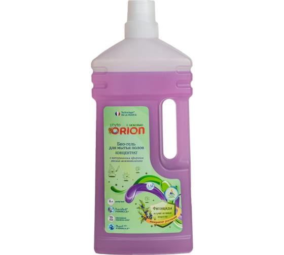 30% и более подготовленная вода, 5-15% н-ПАВ, 5-10% а-ПАВ, менее 5% зелёный хелат, натуральное эфирное масло можжевельника, пищевой краситель, консервант