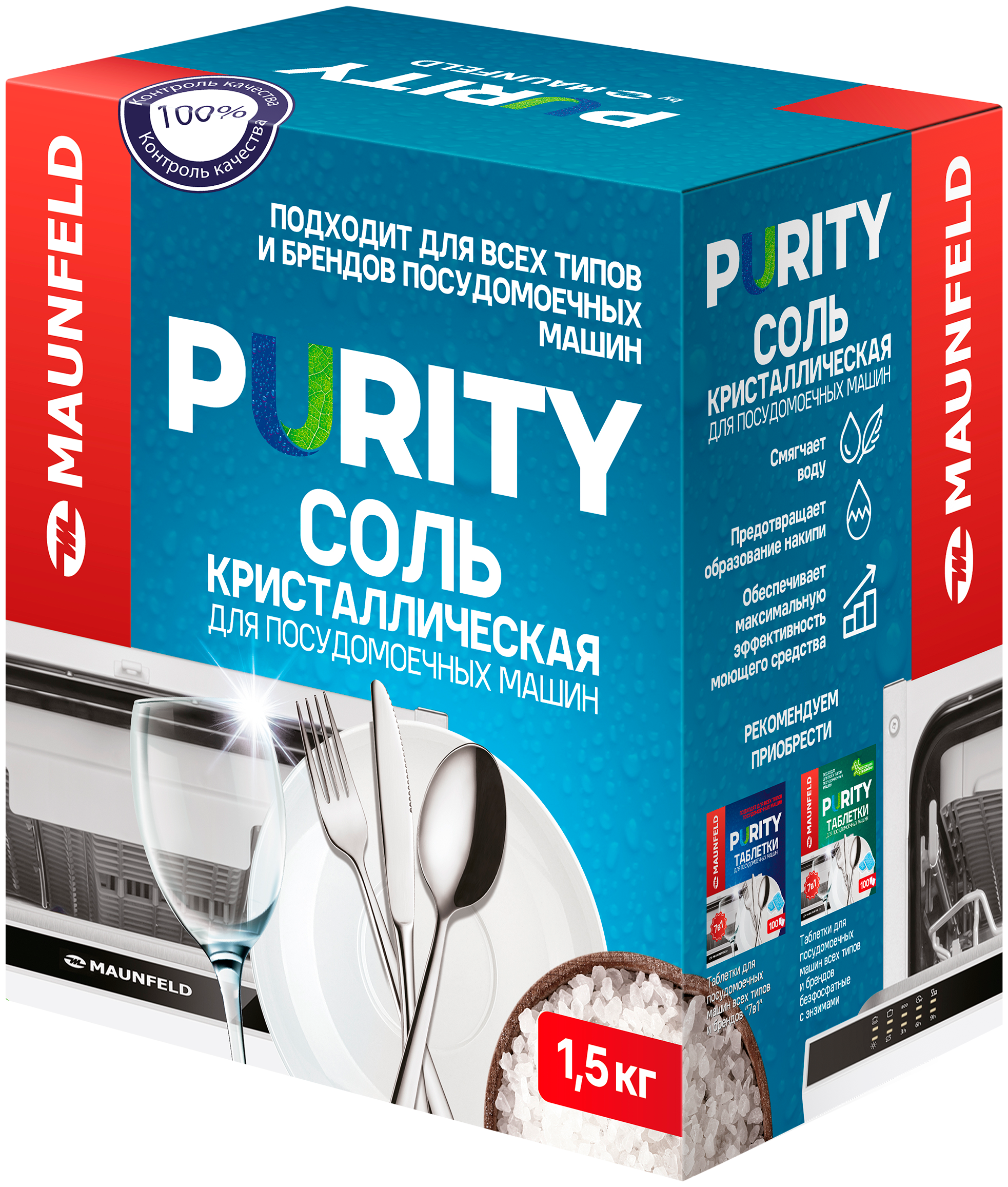 Соль PURITY на 99,99% состоит из чистой гранулированной соли.