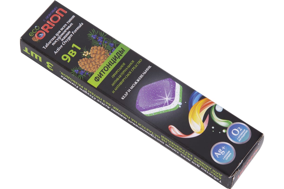 Таблетки для посудомоечной машины ORION с фитонцидами, ионами серебра и активным кислородом эффективно и бережно очищают посуду от любых загрязнений, придают блеск и чистоту.