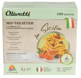 Таблетки без пятен и разводов, бережно очищают посуду от загрязнений и содержат нейтрализатор запаха. Также в состав входят энзимы, которые растворяют жиры и крахмалы, и специальные добавки для смягчения воды. Таблетки предотвращают появление накипи и придают блеск стеклянной посуде.