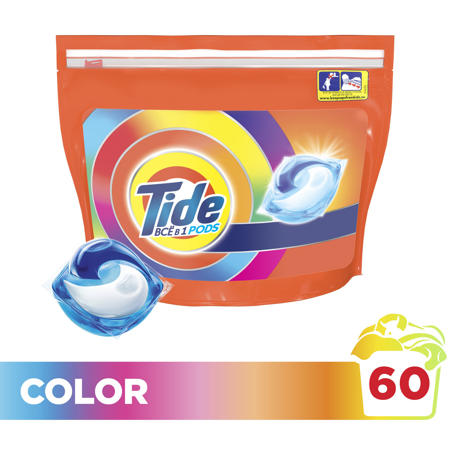 Описание: Tide Всё в 1 Color - это потрясающая эффективность всего в одной капсуле. Кристальная чистота и никаких следов. При контакте с водой специальная инновационная пленка растворяется, и капсула начинает свое действие: очищает, удаляет пятна, придает ярко