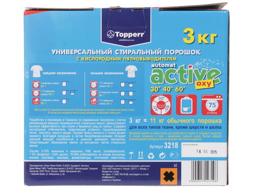 Особенности, дополнительно содержит кислородный пятновыводитель, не подходит для стирки изделий из шерсти и шелка, предотвращает образование накипи