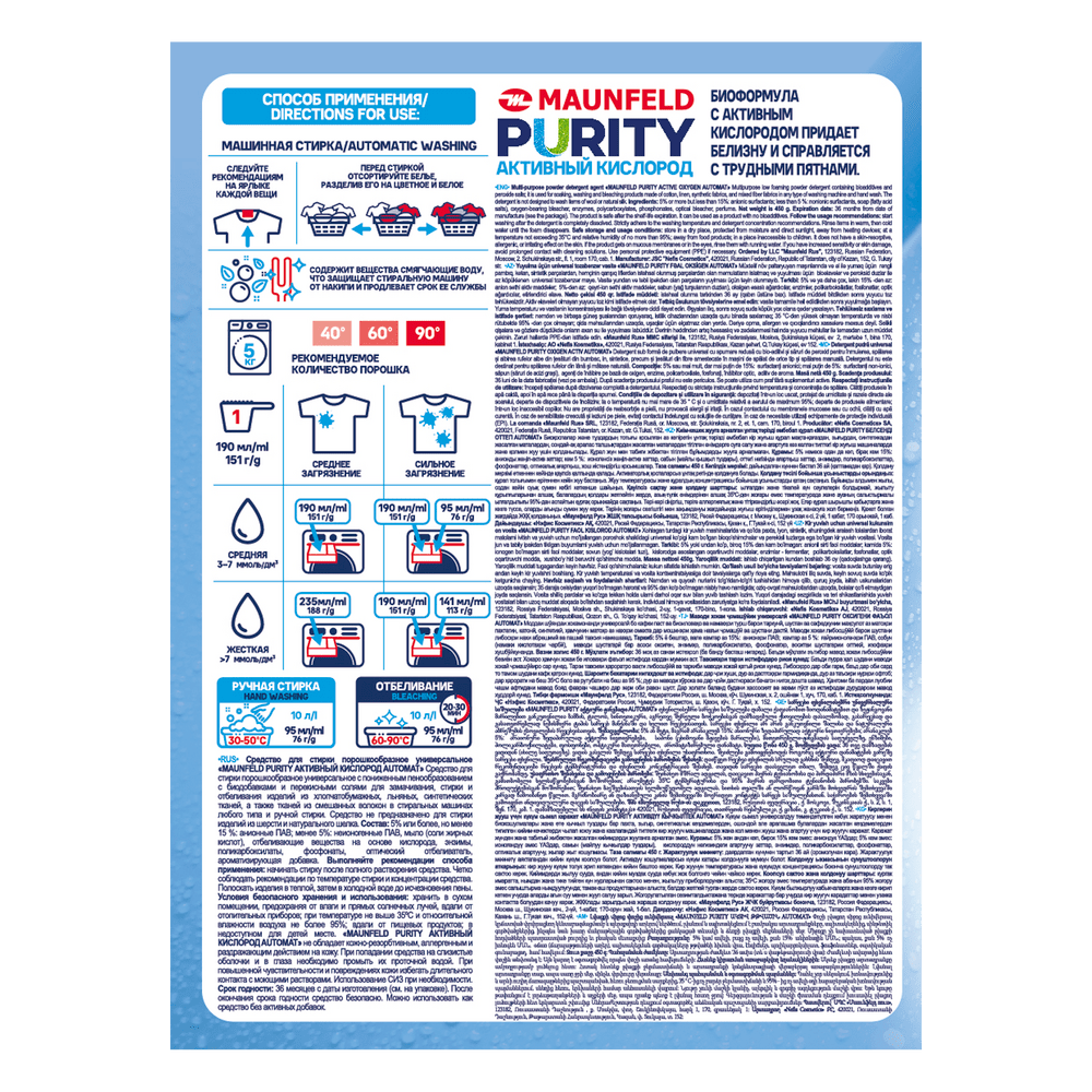 Стиральный порошок Maunfeld Purity Active Oxygen Automat 450г MWP450SO - это высококачественное средство для стирки, которое обеспечивает эффективное удаление загрязнений и бережное отношение к тканям.