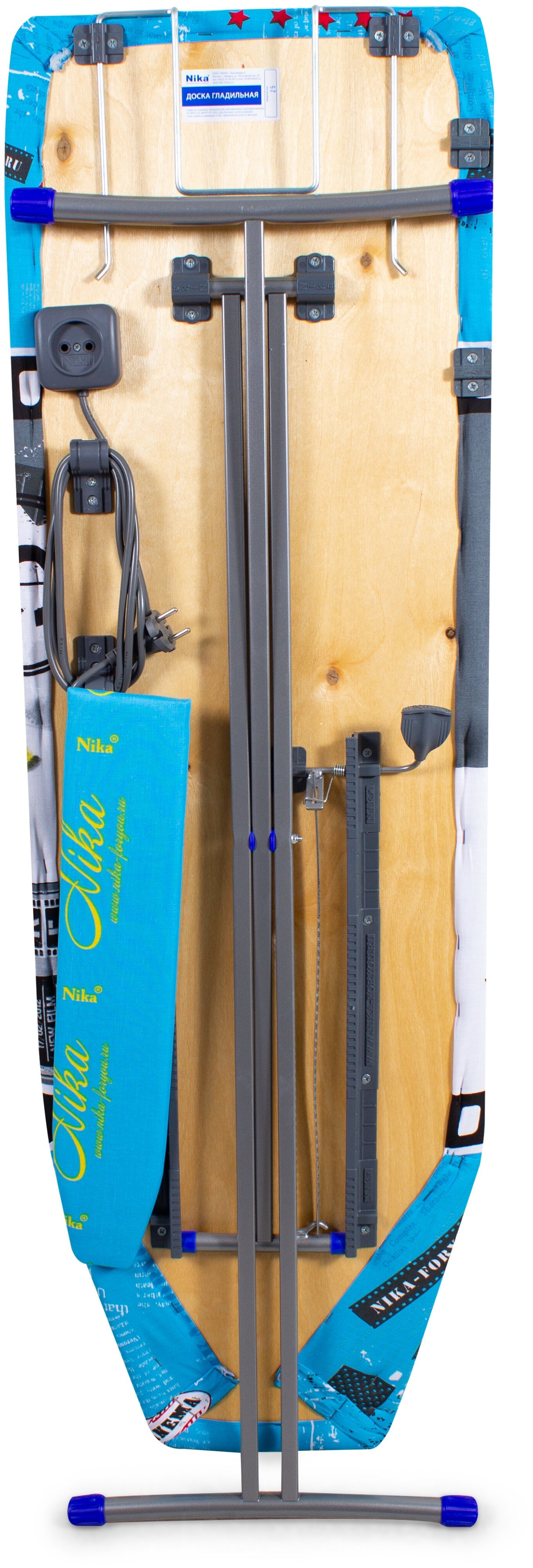 электросоединитель 1,6 м; максимальная нагрузка на гладильную поверхность 15кг; индивидуальная термоупаковка; габариты в сложенном виде (ДхШхВ) – 1300х380х60 мм