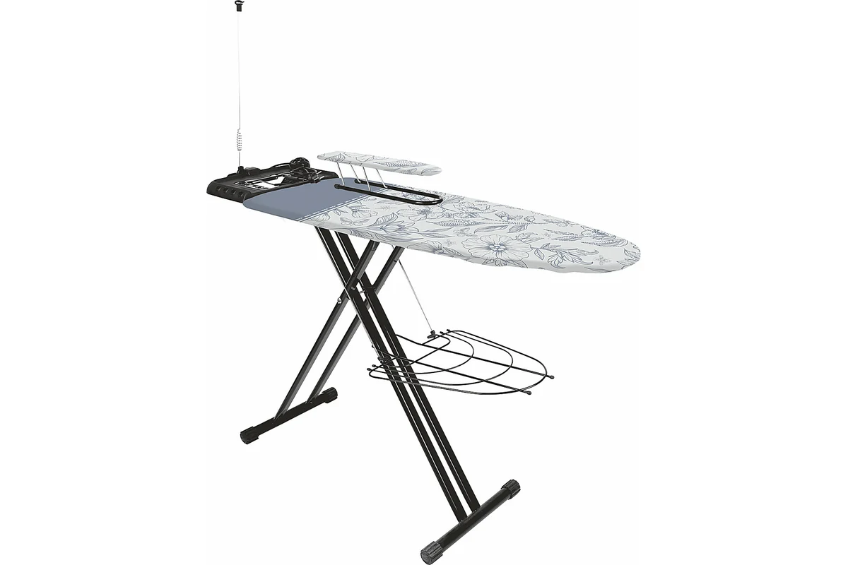 Но это еще не все! Наша гладильная доска также имеет удобную розетку с удлинителем, которая позволяет подключить ваш утюг прямо к доске гладильной! Больше не нужно искать место для удлинителя или вынимать утюг из розетки, когда вы хотите переместить доску гладильную. А держатель провода утюга сделает процесс глажки не только более комфортным, но и безопасным, поможет избежать случайного попадания провода под утюг.