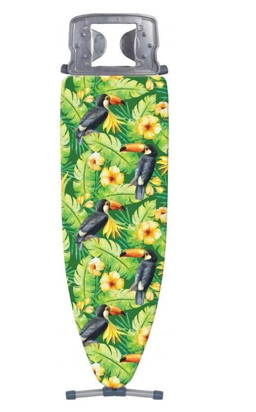 Гладильная доска с плавной регулировкой по высоте, EURO подставкой под утюг и съемным подрукавником. Преимущества: плавно регулируемая высота до 90см, электросоединитель 1,6 м, розетка, максимальная нагрузка на гладильную поверхность 25кг, индивидуальная термоупаковка, удобное хранение. Габаритные размеры: гладильная поверхность (ДхШ) – 1220х400мм. в сложенном виде (ДхШхВ) – 1485х410х55мм. вес – 7.21 кг. Материал: гладильная поверхность – металлическая основа, чехол – хлопок