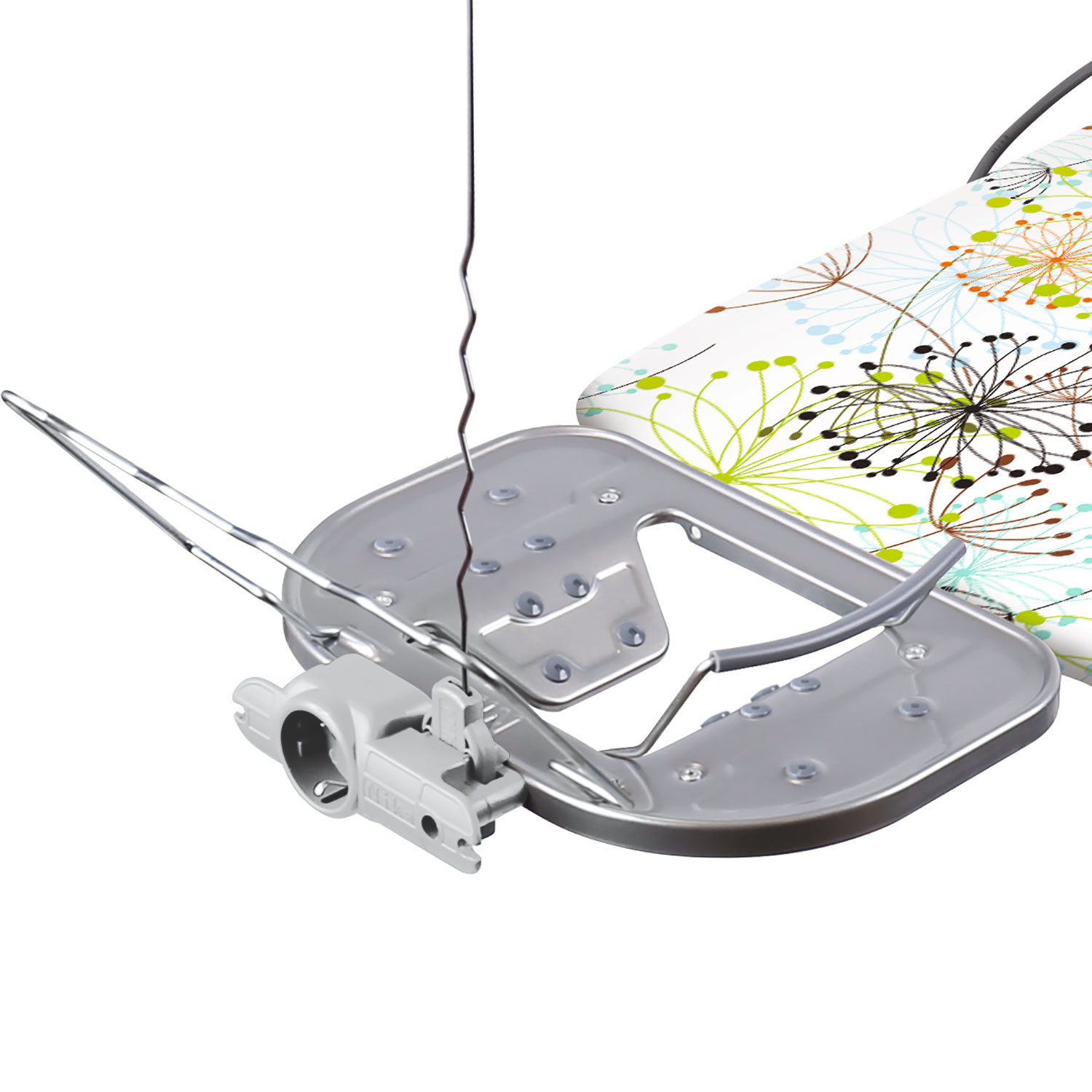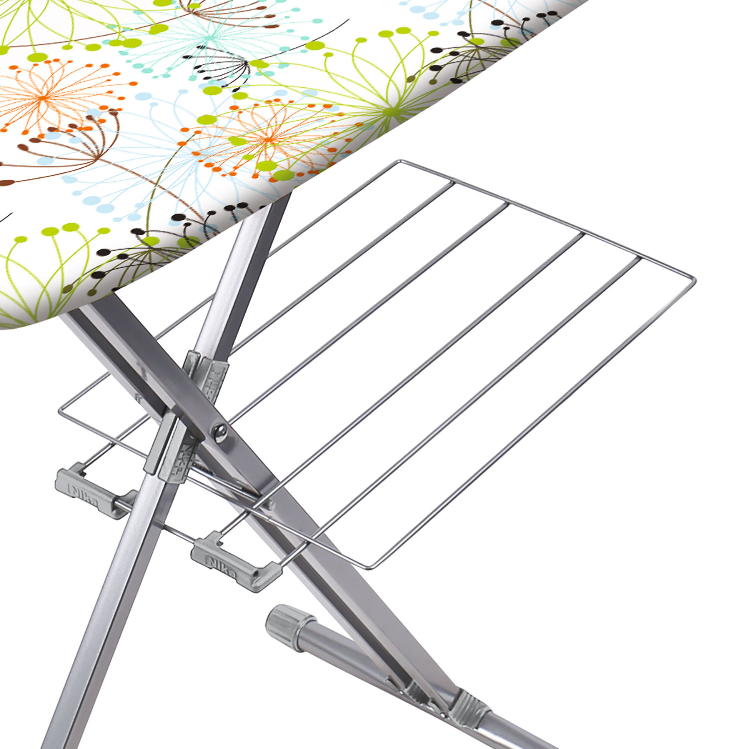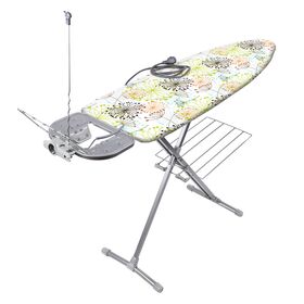 Гладильная доска с электросоединителем и подставкой под утюг, регулируемая по высоте.
