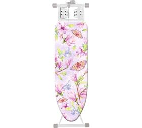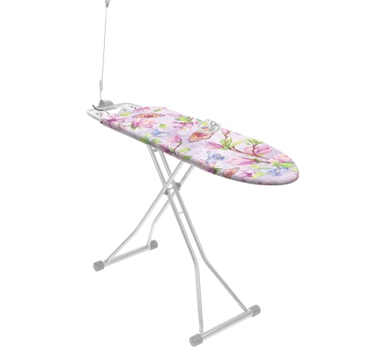 Доска укомплектована электросоединителем и подставкой под утюг. Термостойкий пластик отражает пар, создает эффект двусторонней глажки.