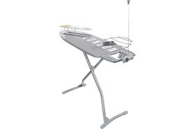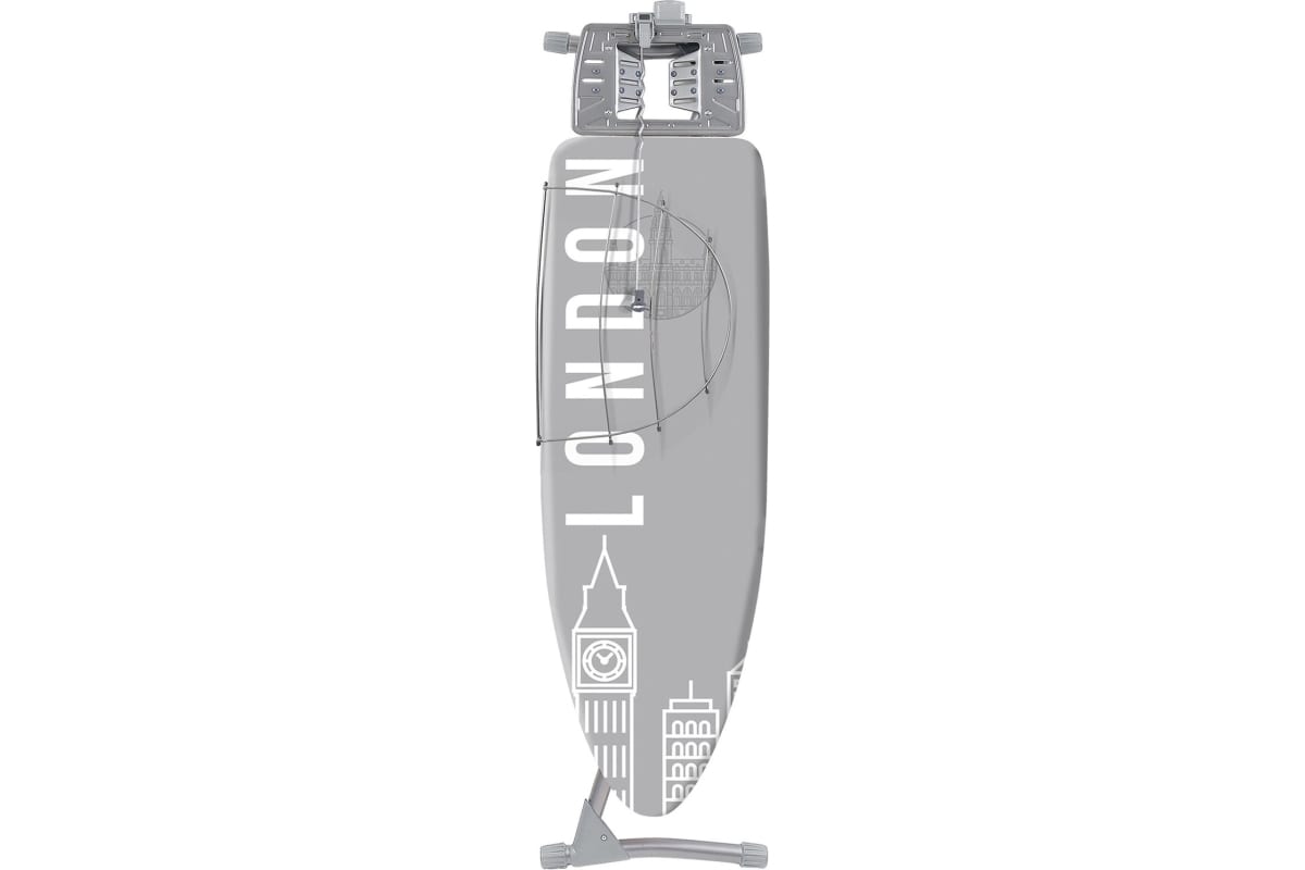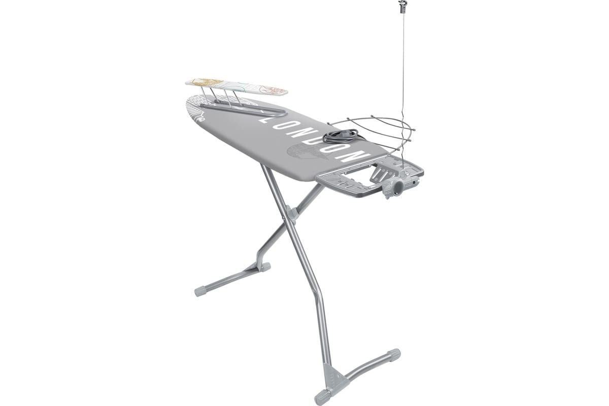 Доску можно регулировать по высоте. В конструкции предусмотрена откидная полка для белья и переносной подрукавник.
