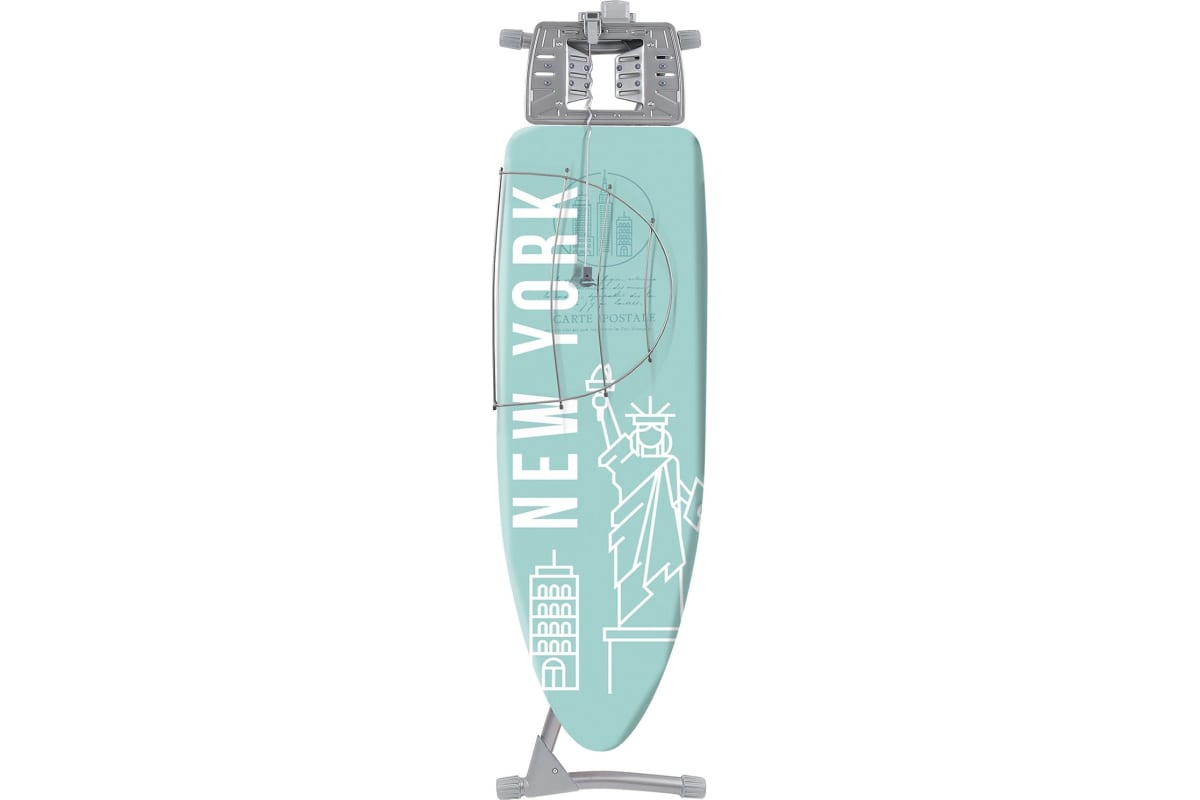 Доску можно регулировать по высоте. В конструкции предусмотрена откидная полка для белья и переносной подрукавник.