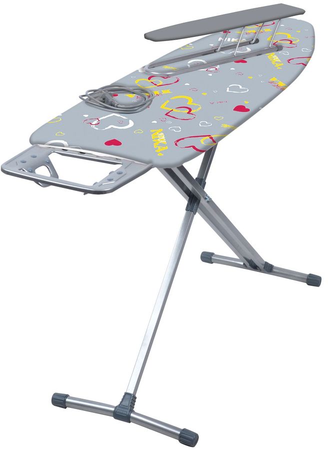 Гладильная доска НИКА с EURO подставкой под утюг, тефлоновым съемным чехлом и съемным подрукавником. Плавно регулируется высота до 90см. Имеется розетка и электросоединитель 1,6м. Максимальная нагрузка на гладильную поверхность составляет 25кг.