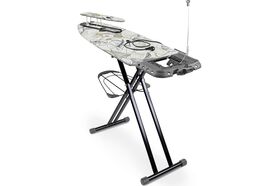 Подходит для правшей и левшей. Доску можно плавно регулировать по высоте. Регулируемые опоры служат для устойчивости доски на неровном полу.