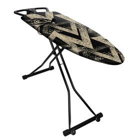 Широкая гладильная доска с электросоединителем и эргономичной подставкой под утюг для правшей и левшей. Плавная регулировка по высоте. Колеса на опорах для удобного перемещения в сложенном виде.