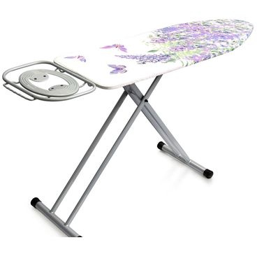 Комфортная в использовании гладильная доска. Металлический перфорированный гладильный стол (металлическая сетка), чехол с подкладкой (100% хлопок), чехол с антипригарным покрытием. Электростатическая порошковая покраска. Подставка под утюг с антипригарными силиконовыми вставками.
