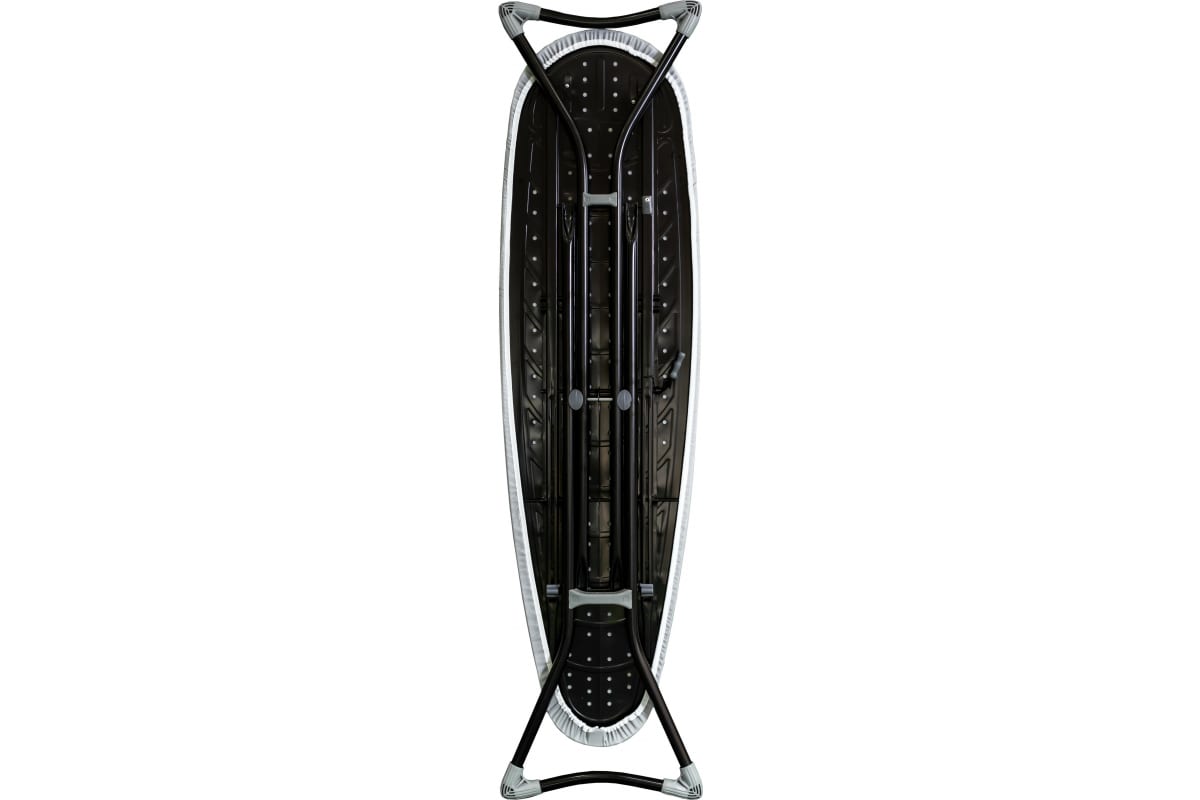 Современный дизайн. Устойчивая конструкция. Моноблочная стальная столешница. Чехол с антипригарным покрытием. Подставка под утюг. Регулировка высоты 78-98 см. Для обеспечения устойчивости и для препятствия образованию царапин на полу ножки изделия снабжены противоскользящими вставками.