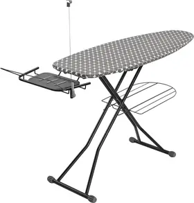 STARWIND SW-IB1802 – это увеличенная гладильная доска с размером 129,5x46 см, обеспечивающая еще больше удобства при глажке. Чехол толщиной 7 мм защищает ткань от повреждений, а металлическое основание с перфорацией помогает эффективно отводить пар.
