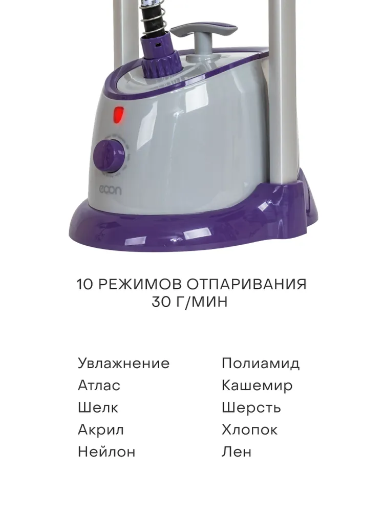 Мощный напольный отпариватель для одежды с доской для глажения ECON ECO-BI2010S - это современный и надежный помощник для всех кто хочет выглядеть безупречно.