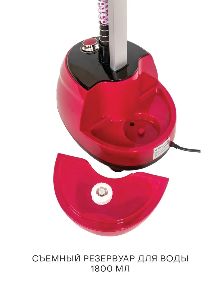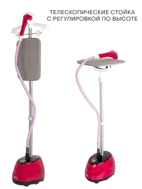 Комплектация Отпариватель, гибкий шланг, телескопическая стойка, утюжок для отпаривания, перчатка, плечики для одежды с прищепками для брюк и юбок, гарантийный талон, руководство по эксплуатации.