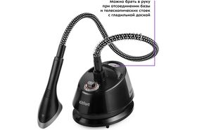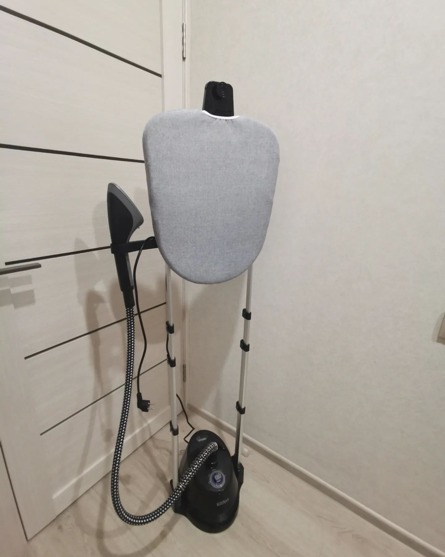 Отпариватель оснащён гладильной доской, которая может быть расположена горизонтально, вертикально и под наклоном. Она значительно облегчает и ускоряет процесс отпаривания. Также на ней располагается крючок, на который можно вешать вешалку с одеждой.