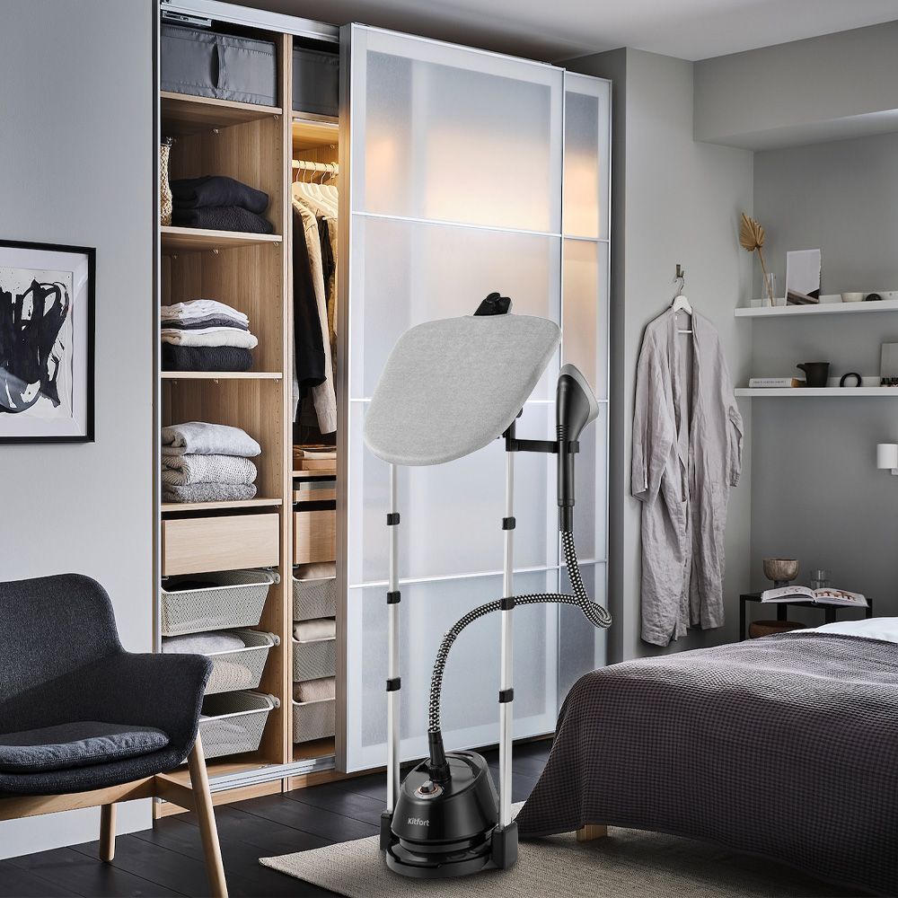 Отпариватель Kitfort КТ-9112 позволяет быстро прогладить любые вещи и изделия из текстиля даже со сложной текстурой, которые обычно не гладят. Кроме глажки и отпаривания он обрабатывает вещи мощной струёй горячего пара, проводя чистку и дезинфекцию.
