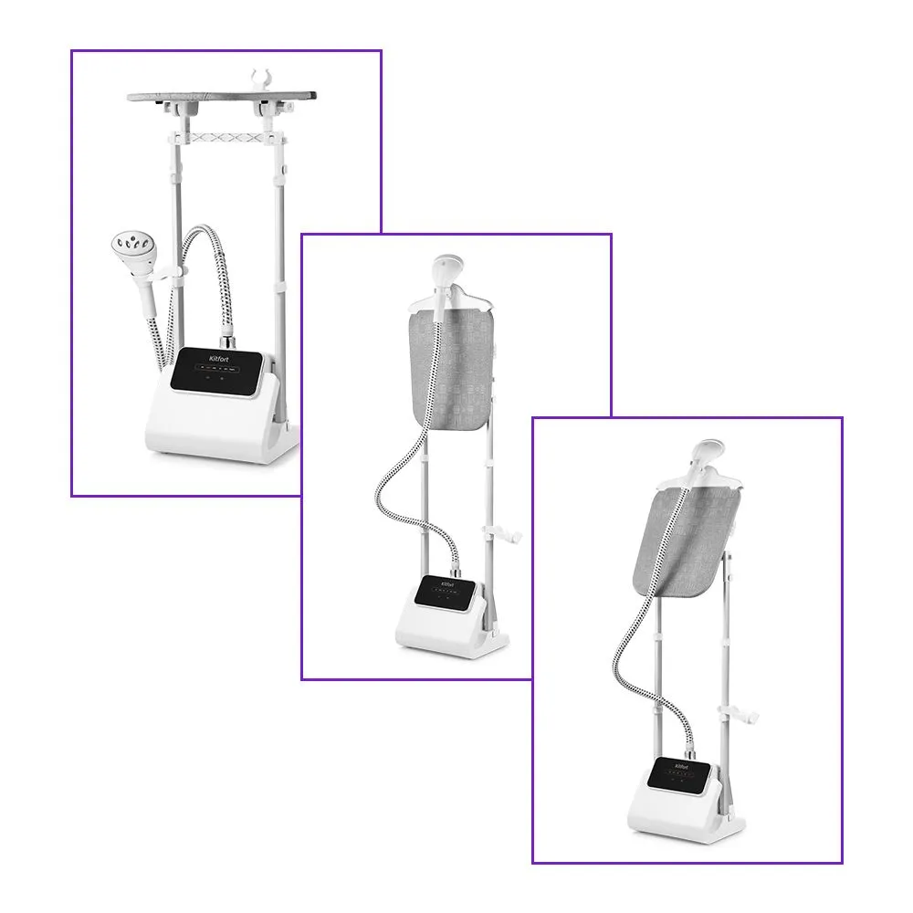 Отпариватель оснащён гладильной доской, которая может быть расположена горизонтально, вертикально и под углом 30° или 60°.