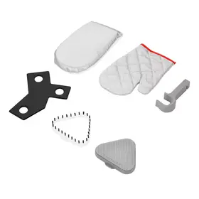 В комплекте идёт дощечка для глажки, с помощью которой вы сможете прогладить мелкие детали, такие как манжеты или воротник рубашки. Варежку рекомендуется надеть на руку, чтобы случайно не обжечься паром или о горячие поверхности.