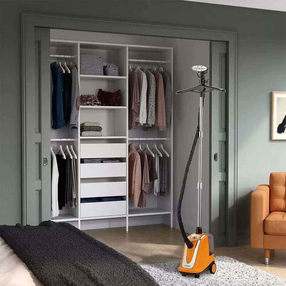 С вертикальным отпаривателем можно мгновенно придать аккуратный вид различным текстильным изделиям. Одежду для отпаривания можно удобно развесить на вешалке отпаривателя, обычной вешалке, а также на сушилке для белья или верёвке.