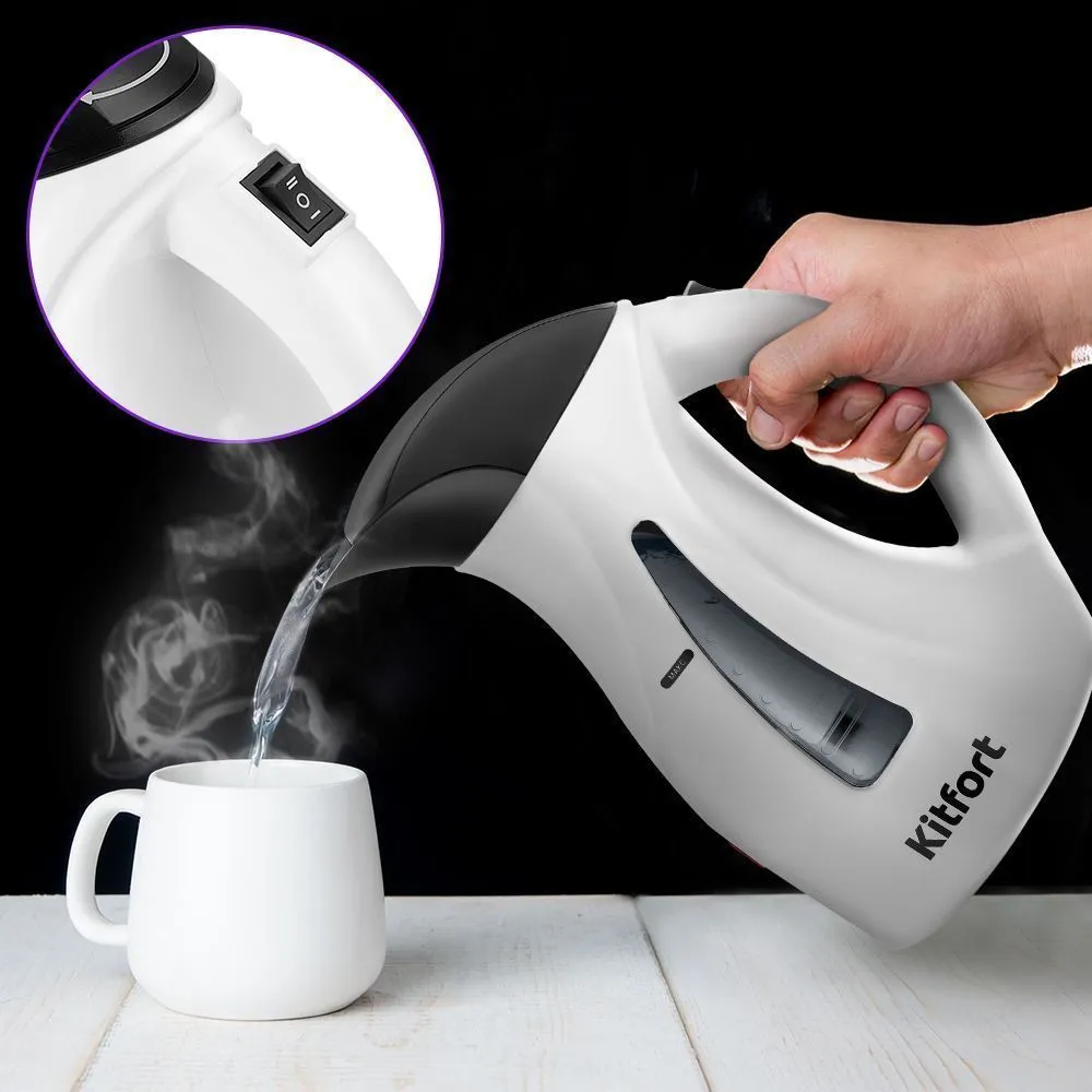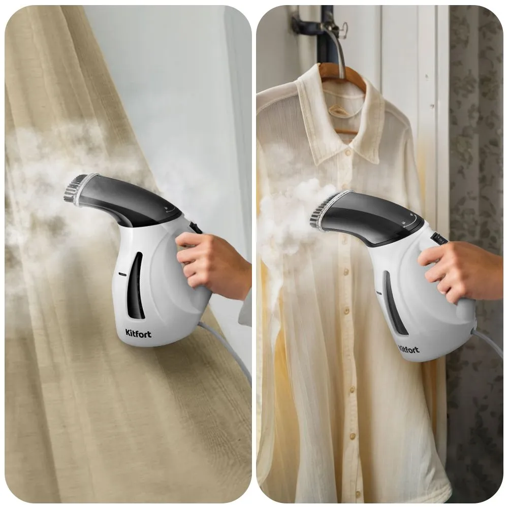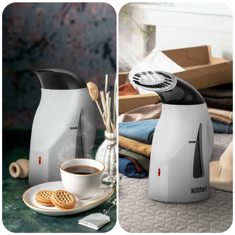 Ручной отпариватель-чайник КТ-9226 разглаживает текстиль горячим паром и кипятит воду. Компактный, лёгкий и прост в использовании, подходит для быстрого ухода за вещами без гладильной доски. Удобен для дома и путешествий, заменяет два устройства.
