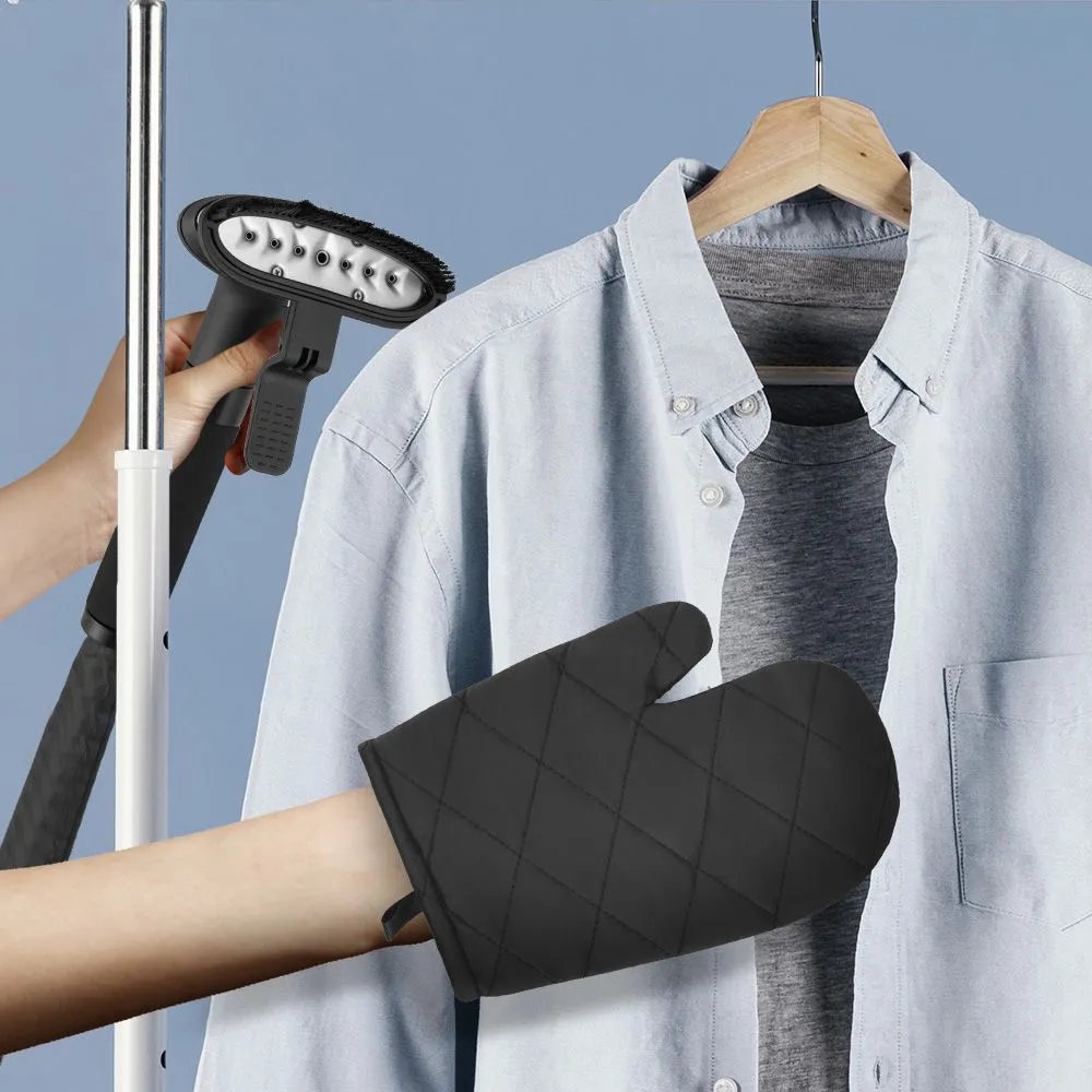 Защитную варежку рекомендуется надевать на руку, чтобы случайно не обжечься. Однако не стоит направлять струю пара непосредственно на варежку — струя пара может проникнуть даже через варежку и обжечь руку. Также в комплекте идёт дощечка для глажки.