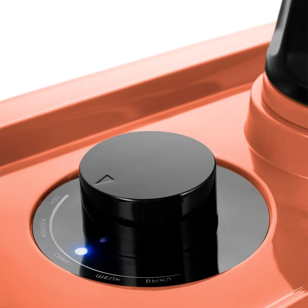 Отпариватель КТ-9241 имеет 4 уровня подачи пара для различных типов тканей. Регулятор подачи пара включает и выключает устройство, а также переключает уровни подачи пара. Всего пять положений: «Выкл», «Шёлк», «Синт.» (синтетика), «Хлопок», «Лён».