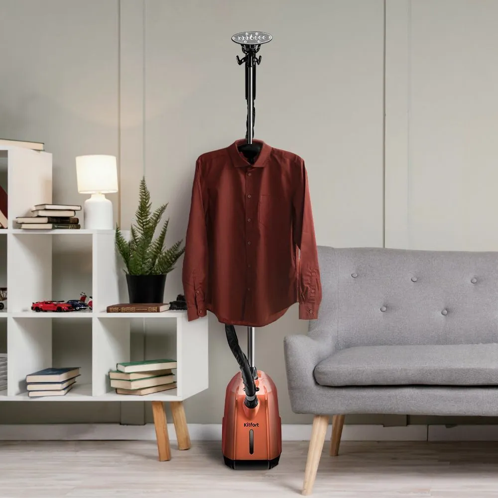 Отпариватель КТ-9241 позволяет быстро прогладить любые вещи и изделия из текстиля. В отличие от утюгов, которыми гладят ткани, расположенные горизонтально, отпаривателем обрабатывают одежду и ткани, расположенные вертикально. Время разогрева 60 секунд.