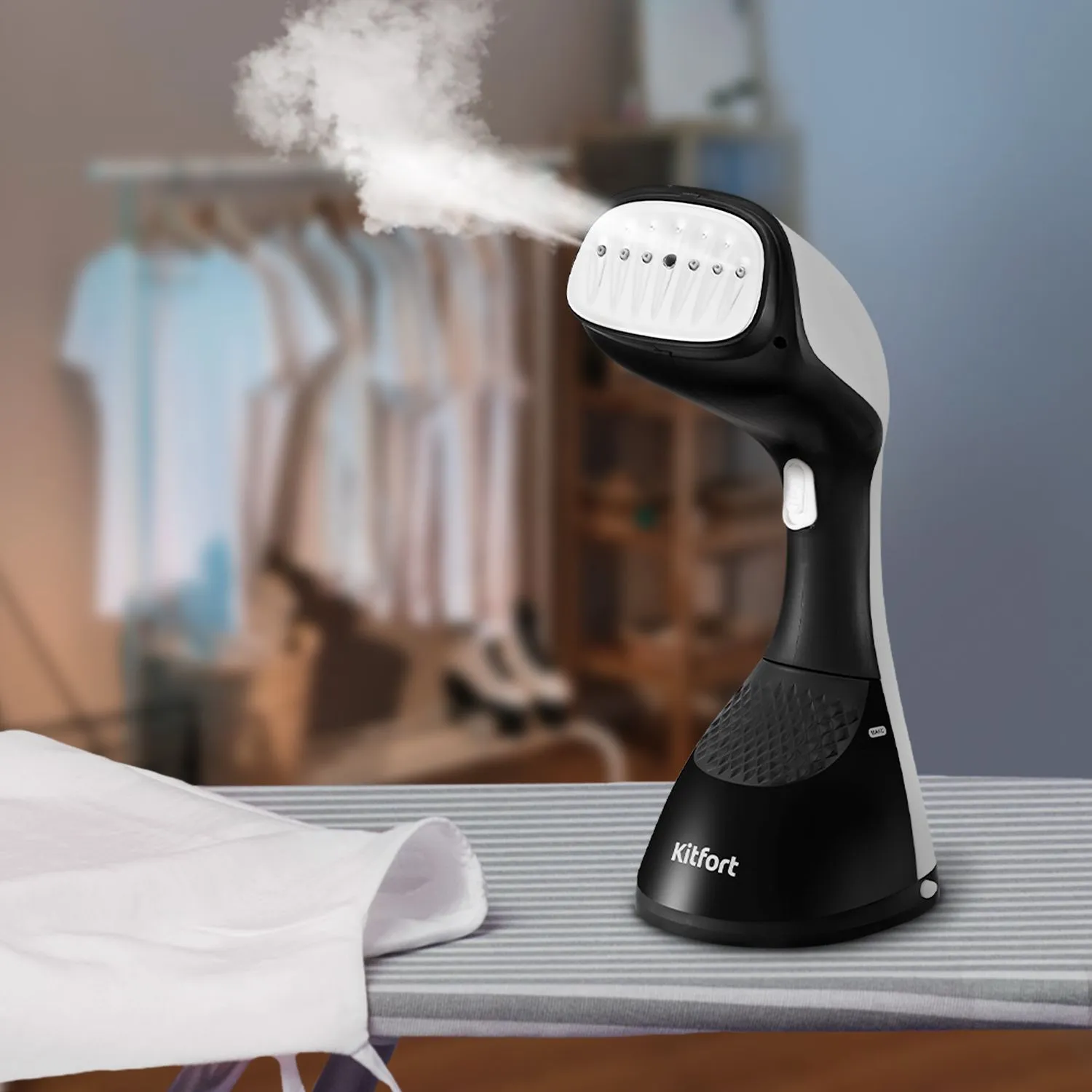 Ручной отпариватель КТ-9250 предназначен для разглаживания изделий из текстиля с помощью потока горячего пара. Ручной отпариватель приведет в порядок вещи быстро и практически в любом месте без раскладывания гладильной доски.