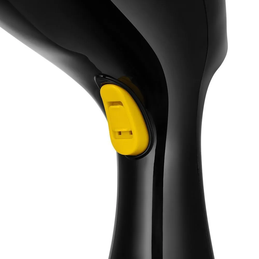 В отпаривателе КТ-9267 управление процессом подачи пара осуществляется с помощью одной кнопки на ручке прибора. Для фиксации кнопки в нажатом положении есть специальный фиксатор. Сдвиньте фиксатор вниз, чтобы зафиксировать кнопку подачи пара в нажатом положении.