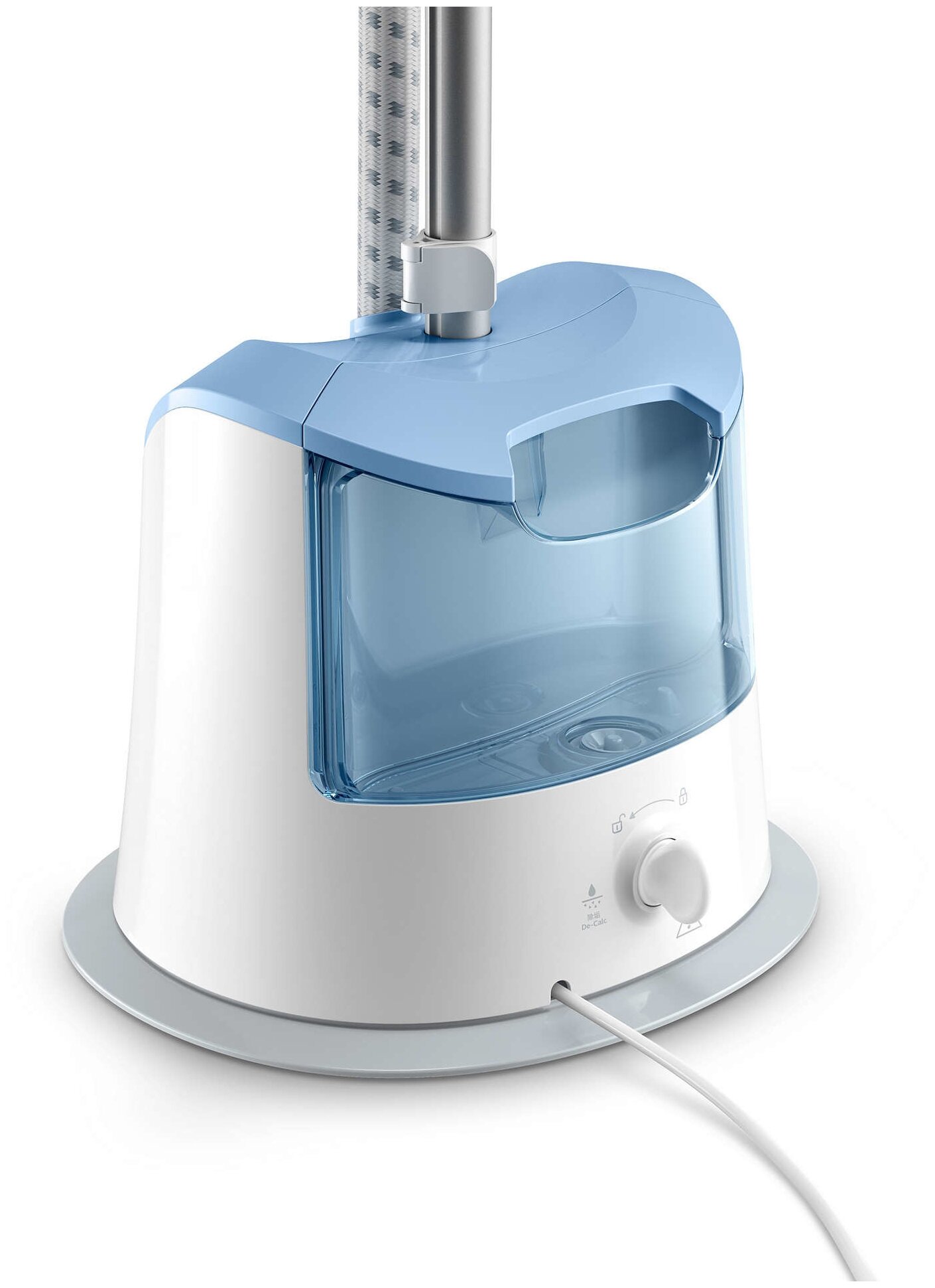 2 режима подачи пара; подходит для ухода за всеми тканями; в комплекте: рукавица для дополнительной защиты, вешалка для одежды, регулируемая стойка;