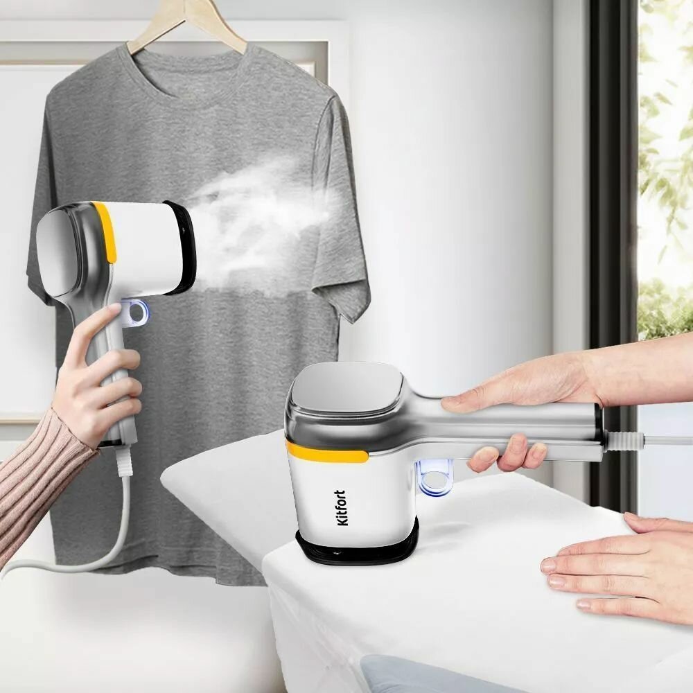 Ручной отпариватель КТ-9172 позволяет быстро погладить любые изделия из текстиля,
