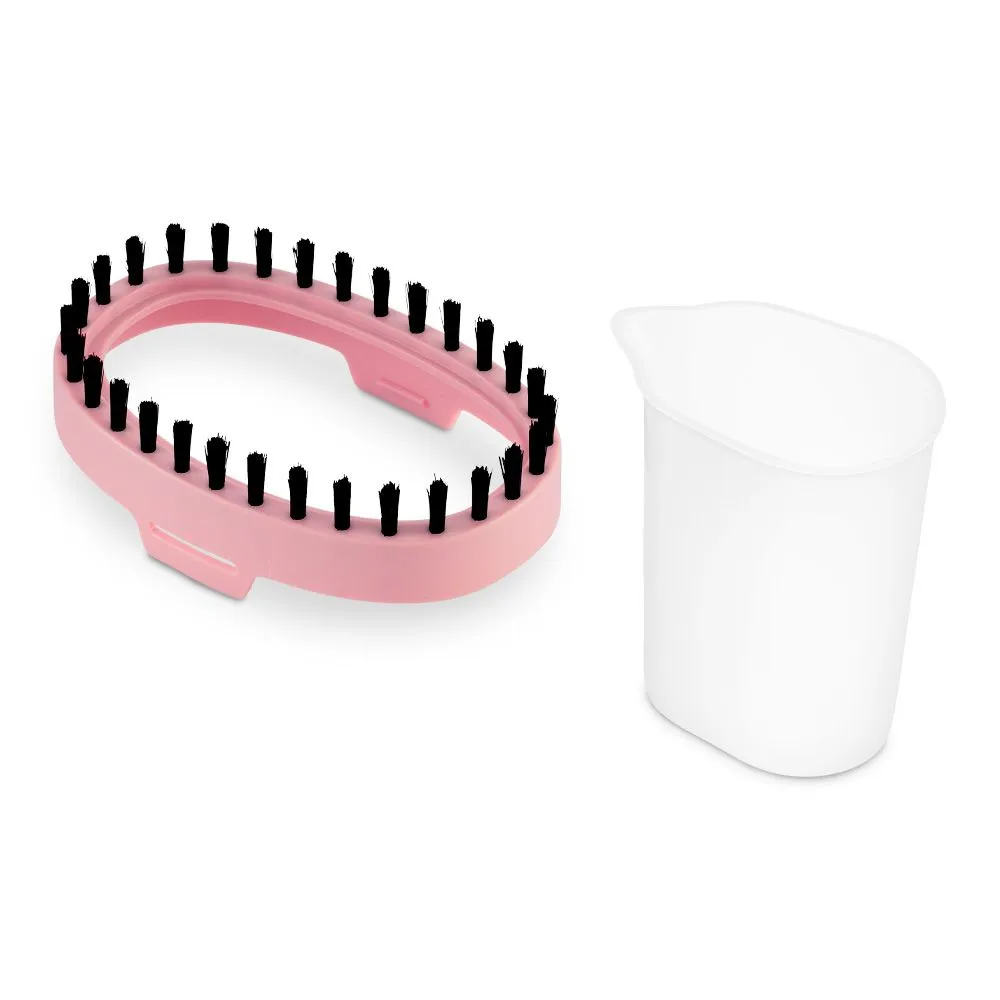 В комплекте к отпаривателю поставляется мерный стакан для удобного добавления воды в резервуар и ворсовая насадка, которая позволяет почистить вещи от пыли, волос или шерсти при отпаривании.