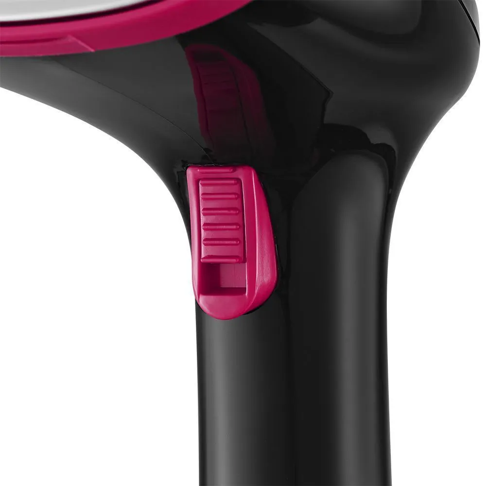 В отпаривателе КТ-9276 управление подачей пара осуществляется с помощью одной кнопки на ручке прибора. Подача пара осуществляется, пока вы удерживаете кнопку. Для фиксации кнопки в нажатом положении на ней предусмотрен специальный фиксатор.