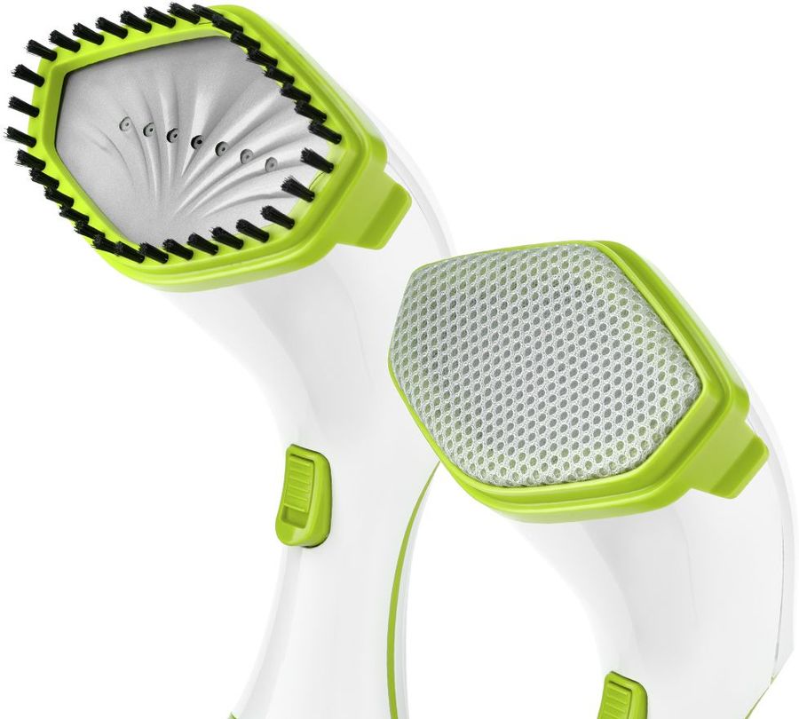 В комплекте с ручным отпаривателем идут 2 насадки. Ворсовая легко чистит загрязнённые поверхности, а также убирает шерсть домашних животных, волосы, ворс. Тканевая насадка необходима при работе с деликатными тканями.
