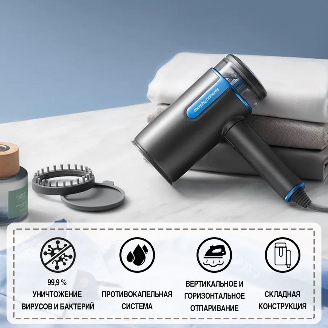Ручной отпариватель Morphy Richards 2 в 1, с функцией триммера, серый (361090) предназначен для деликатного ухода за одеждой дома и в командировке. Для очищения вещей в комплекте есть насадка-щетка. Устройство обеспечивает подачу пара с интенсивностью 20 г/мин, что позволяет устранить даже сильные замины с плотной ткани. С момента активации устройство готово к работе уже через 10 сек. Резервуар вмещает 100 мл воды. Благодаря этому модель способна работать непрерывно в течение 30 мин.