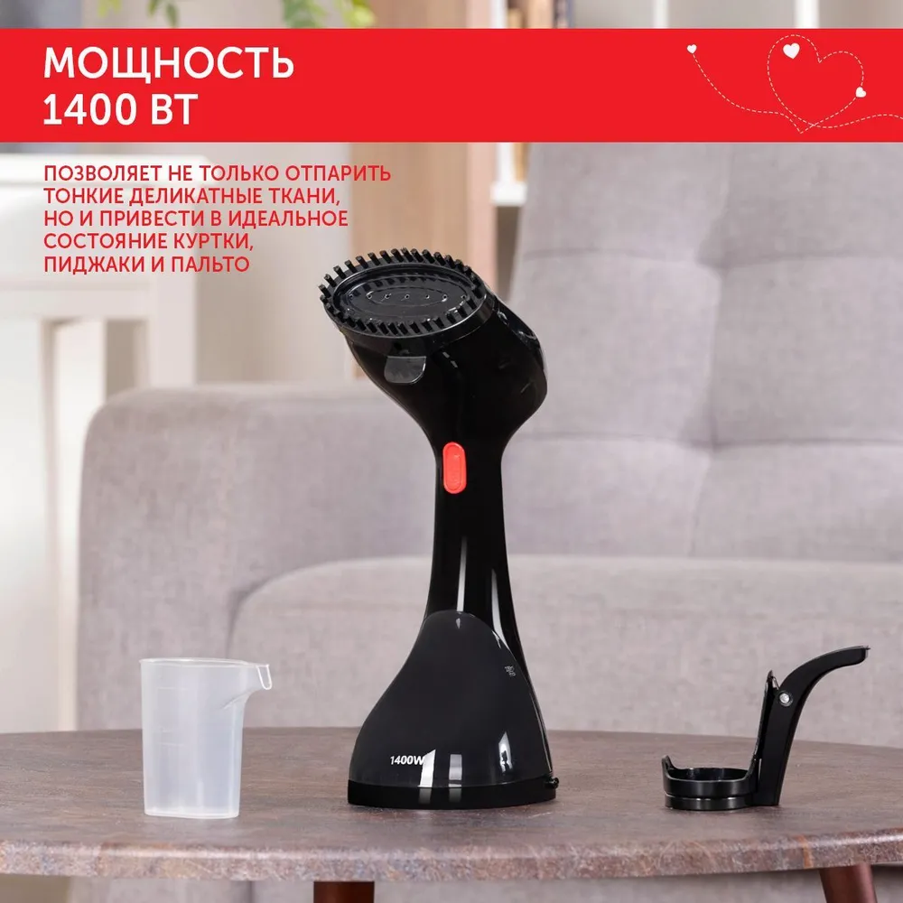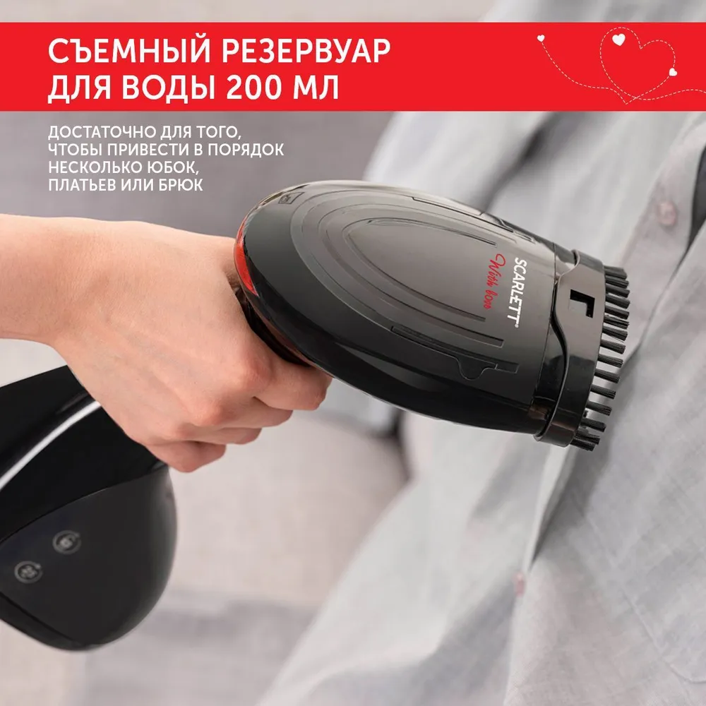 Ручной отпариватель Scarlett SC-GS135S40 мощностью 1400 Вт поможет не только отпарить или прогладить тонкие деликатные ткани (шелк, кружево и пр.), но и привести в идеальное состояние куртки, пиджаки, пальто и шубы. Во время отпаривания насадка-щетка не даст меху сваляться, что делает модель незаменимым прибором по уходу за вашей шубой. Пиджаки и пальто с помощью этого отпаривателя вы сможете не только отгладить, но и почистить от мелкого сора и пыли. Резервуара объемом 200 мл достаточно для того, чтобы привести в порядок несколько юбок, платьев, брюк и т.п. Scarlett SC-GS135S40, в отличие от утюга не оставит никаких заломов и блестящих пятен.