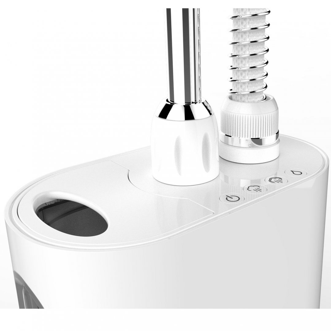 Вертикальный отпариватель Steamone EUH2020W - это модель напольного типа мощностью 1900 Вт, изготовленная из пластика, устойчивого к различным воздействиям. Для подачи пара используется телескопическая стойка, а также шланг длиной 1,58 м. Прибор функционирует от сети. Для подключения есть 2-метровый шнур.