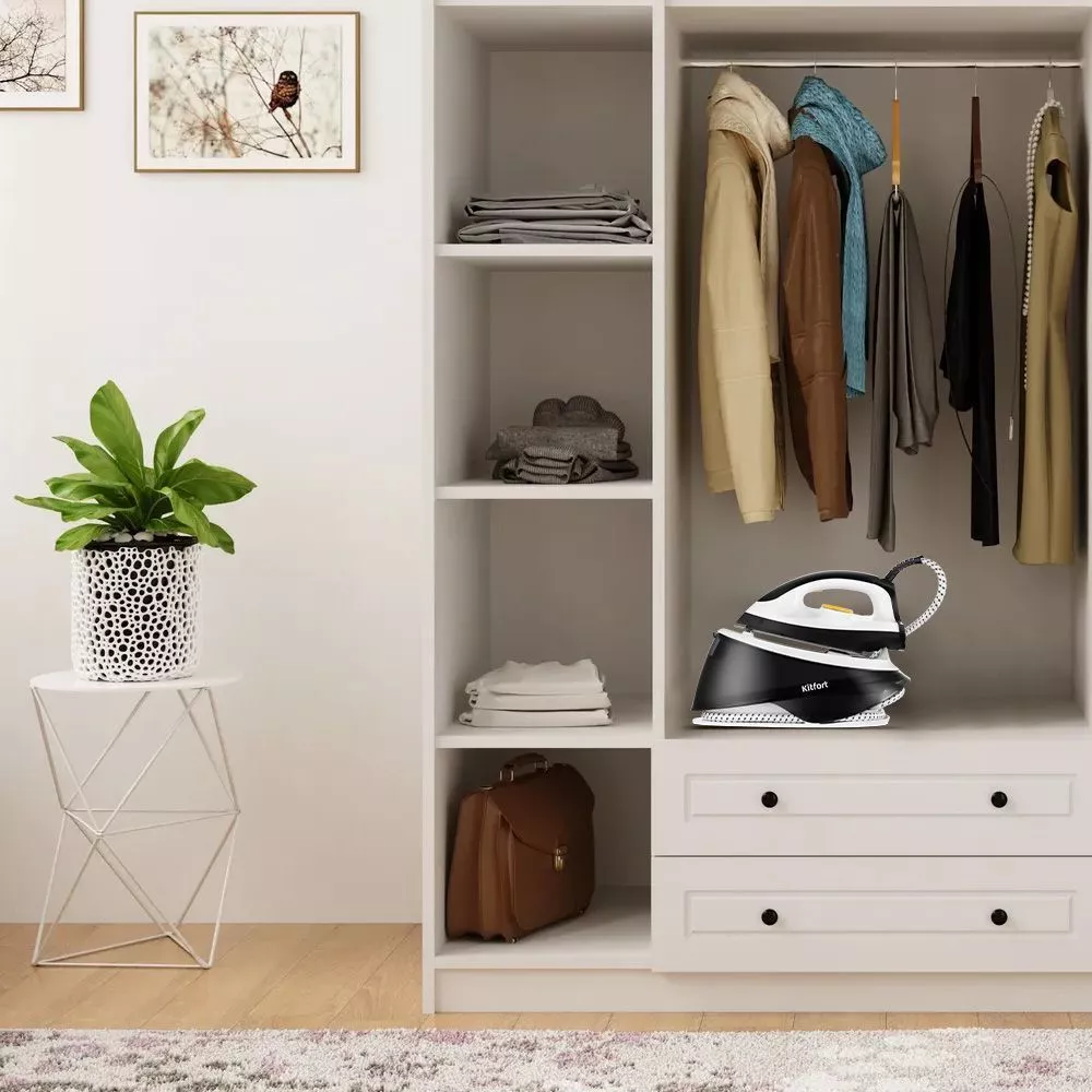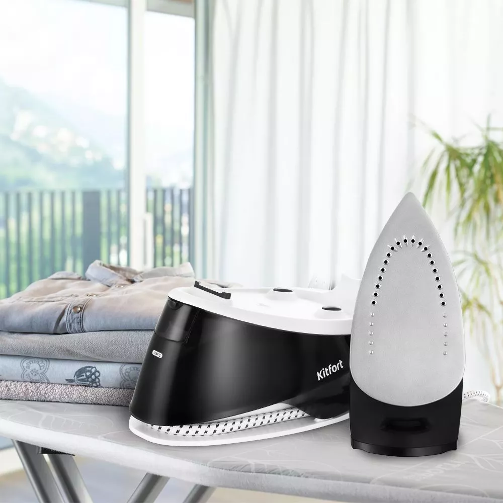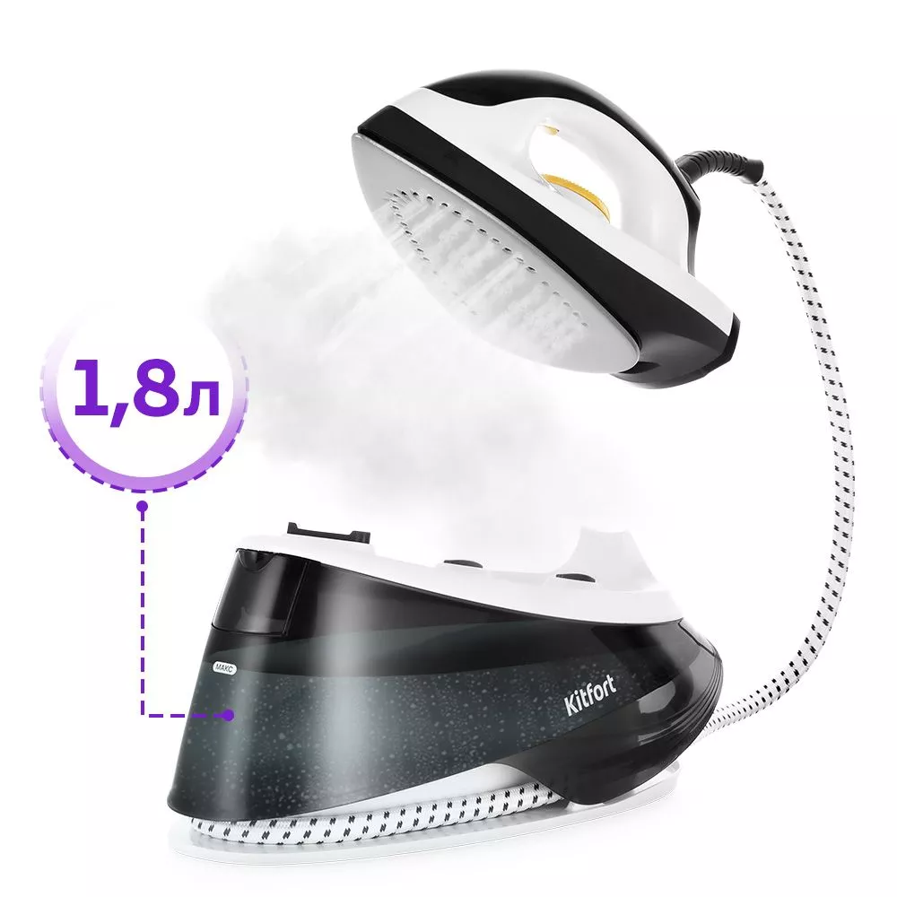Паровая станция KT-9142 - это устройство, заменяющее утюг и отпариватель. Она состоит из утюга и подставки для утюга с резервуаром для воды. Прибор обеспечивает непрерывную подачу пара и справится с глажкой рубашки и брюк за 5 минут!