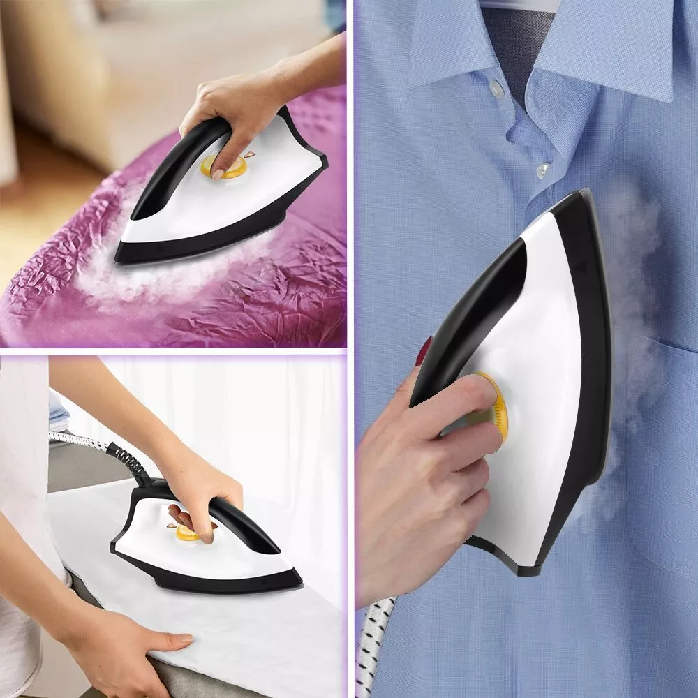 С помощью паровой станции вы можете проводить горизонтальное и вертикальное отпаривание. Например, вы можете погладить шторы, не снимая их, обивку мягкой мебели и другое. Также утюжок может работать как обычный утюг и проводить сухую глажку вещей.