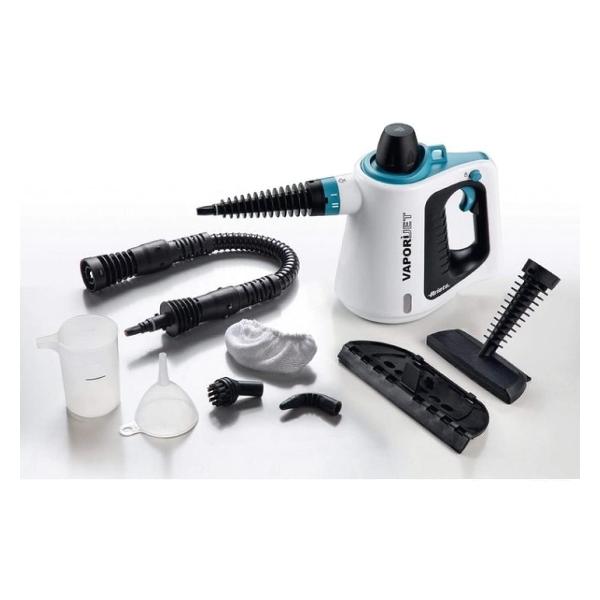 Паровой очиститель Ariete 4137 White работает от стандартной электросети, для подключения к которой предусмотрен шнур оптимальной длины. За счет этого не ограничивается свобода движений. Объем бака для воды составляет 250 мл. Благодаря этому модель характеризуется продолжительной работой. Для удобства наполнения резервуара предусмотрена воронка. Пароочиститель поставляется с семью насадками, в том числе для отпаривания тканей.