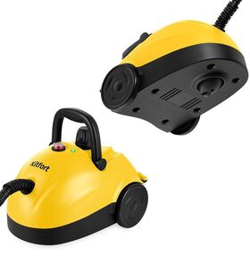 Паровой очиститель Kitfort КТ-9136-1 удаляет жир, грязь и известковые отложения, подходит для домашнего использования и для уборки вне помещений. Установлены три режима работы: пароочиститель, паровая швабра, отпариватель. Давление не превышает 3 бар. Время нагрева — до 8 минут. Интенсивность подачи пара достигает 50 г/мин. Установлен большой резервуар для воды из нержавеющей стали объемом 1 л, что позволяет продолжительное время использовать устройство.