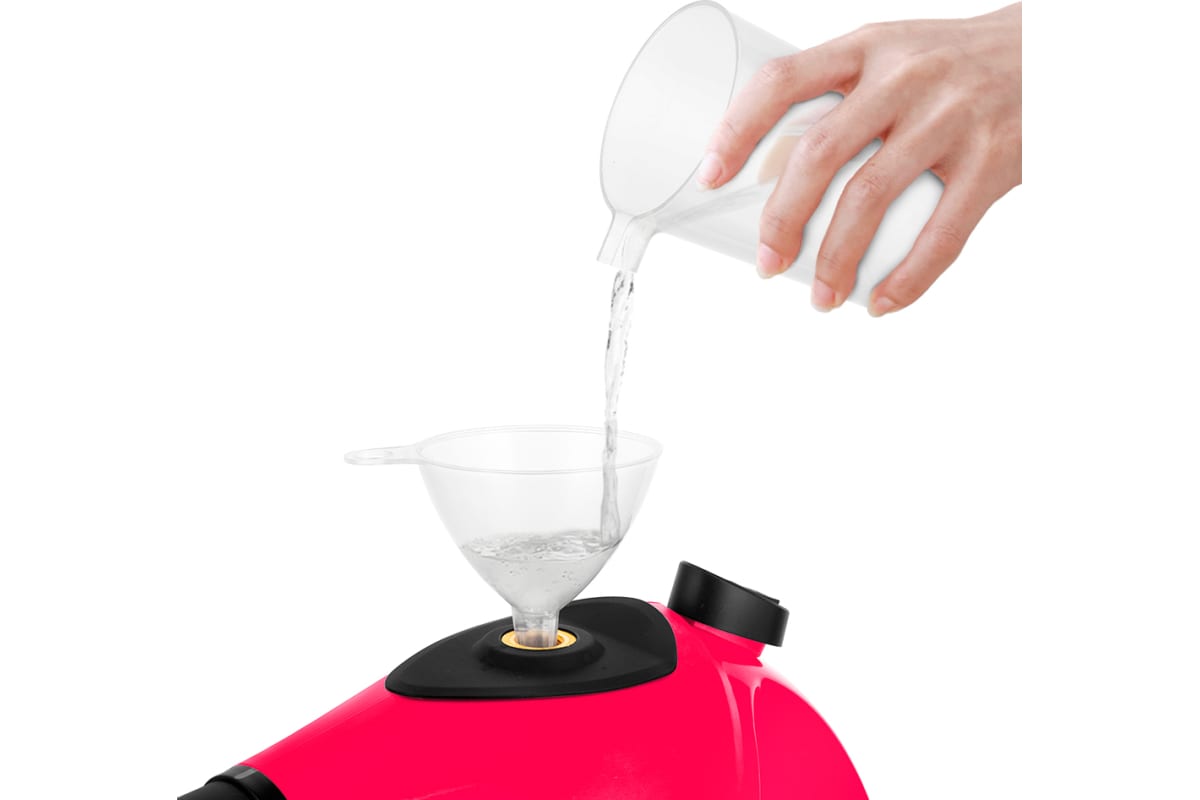 В устройство удобно наливать воду благодаря наличию воронки и мерного стакана.