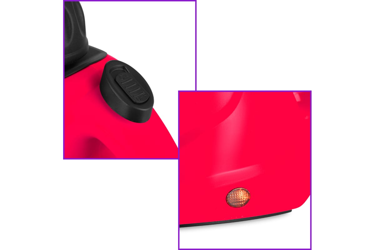 Прибор безопасен для здоровья человека и не приносит вреда окружающей среде. Пароочиститель компактный и легкий. На корпусе есть ручка для переноски.