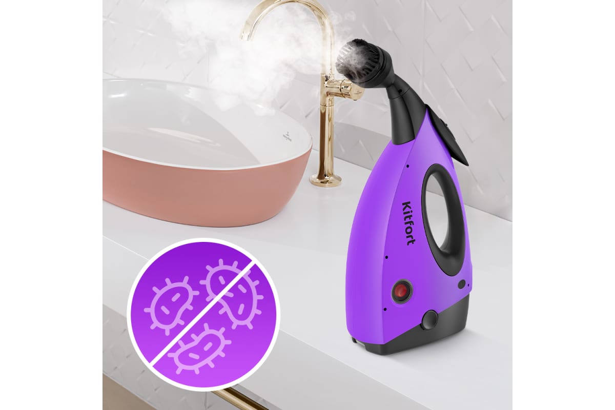 Прибор безопасен для здоровья человека и не приносит вреда окружающей среде. Пароочиститель компактный и легкий. На корпусе есть ручка для переноски.