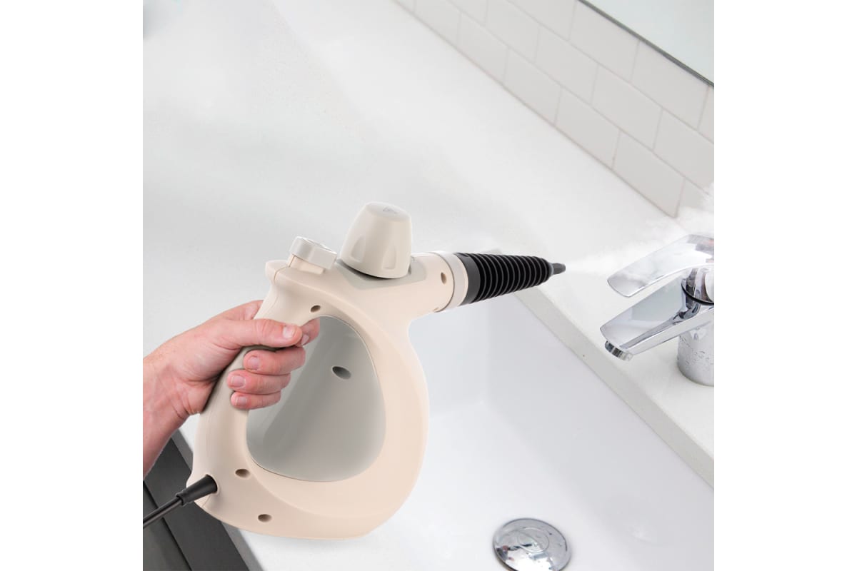 Пароочиститель компактный и легкий. На корпусе есть ручка для переноски.