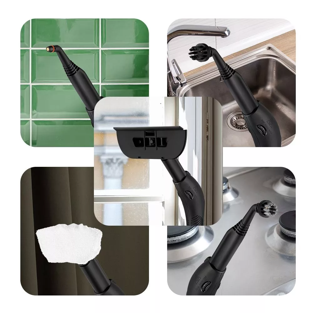 Большое количество насадок в комплекте поможет очистить труднодоступные или сильнозагрязненные поверхности. В случаях сильного загрязнения используйте струйную насадку, скребок с тряпкой для отпаривания, стальную и нейлоновую щётки.